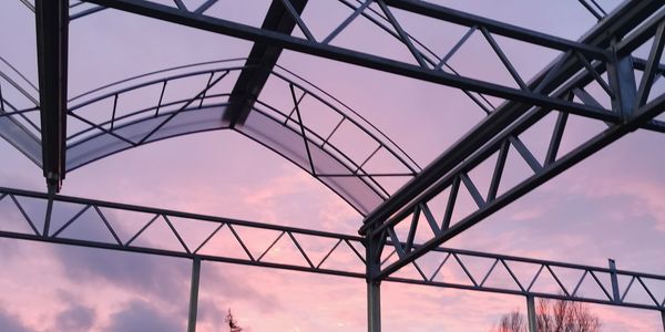 The half-moons on the end gables are clad with the same transparent Rovero Netfilm that is on the roof using an aluminium grip rail system on the arches & lattice.