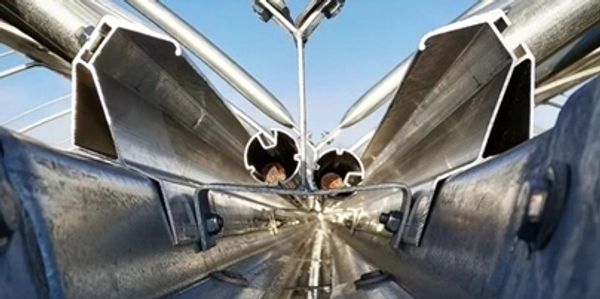 In the ridge, the arches are linked to an aluminum ridge profile with a steel ridge cover plate above to protect the rolled-up film.