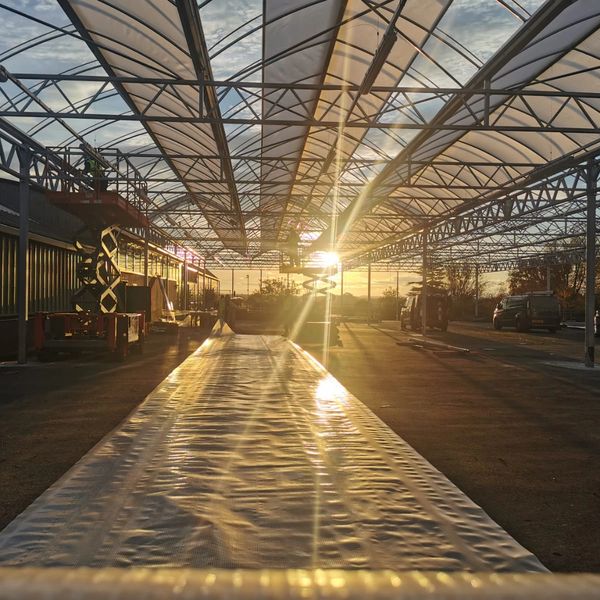 Rovero created a specialist reinforced polythene film (Netfilm) for use on the rolling roof systems. This film is incredibly strong thanks to the reinforcing criss-cross fibres whilst still maintaining an very credible 83% light transmission (PAR).